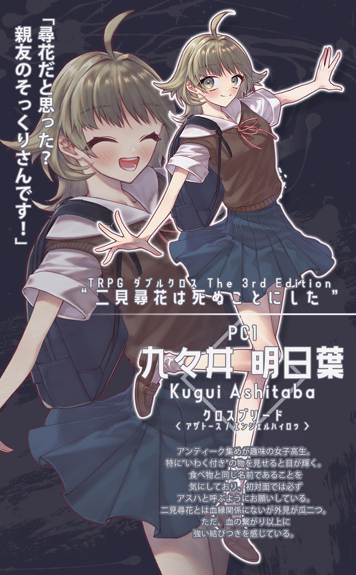 | シナリオ | 二見尋花 | 懐旧 | / | 悔悟 | 親が間違えるくらい顔がそっくりの幼馴染。 びっくりだよね! | ||