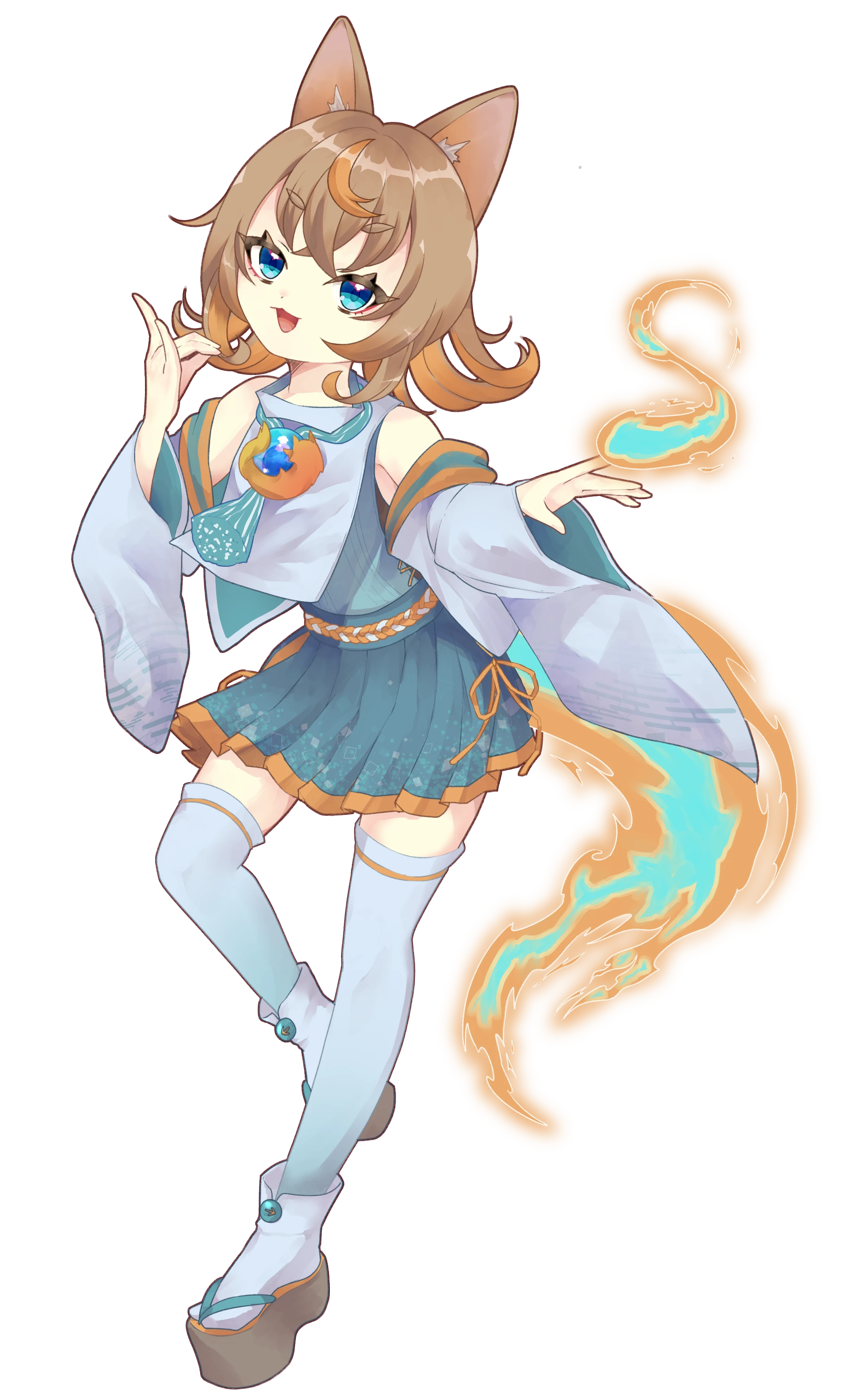 和装に近い、狐耳と燃える尻尾がトレードマーク。