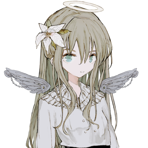 表出しているのは花と羽、そして天輪。しかし全て本物ではなく、羽に至っては針金のような物が背中から突きでている。