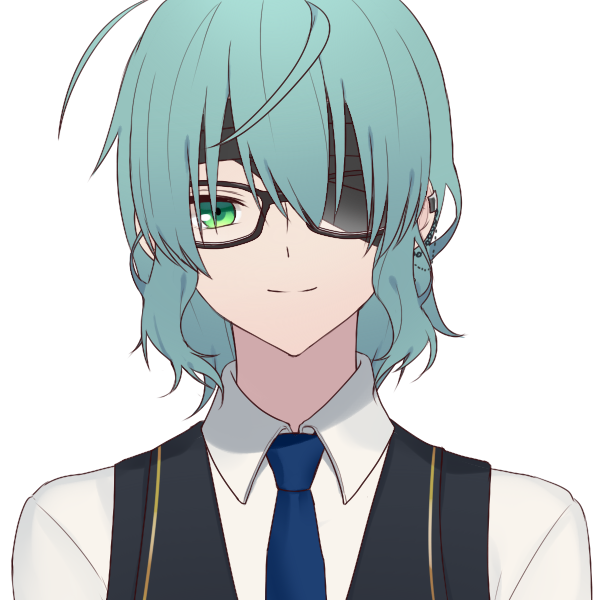 青い髪にオッドアイが特徴的な男性。中性的な容姿と声色をしている。