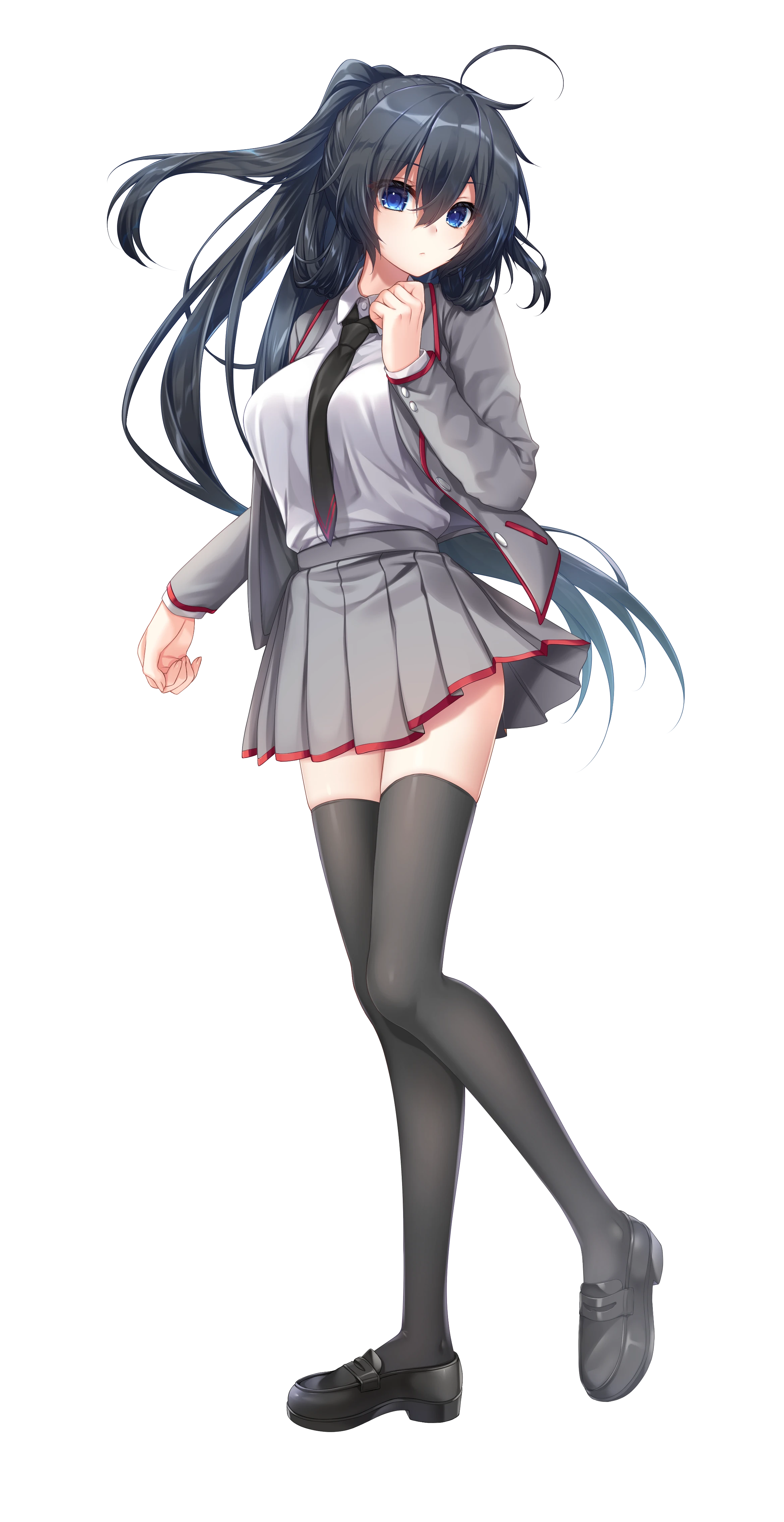 腰まで流した髪をポニーテールにしてまとめている。