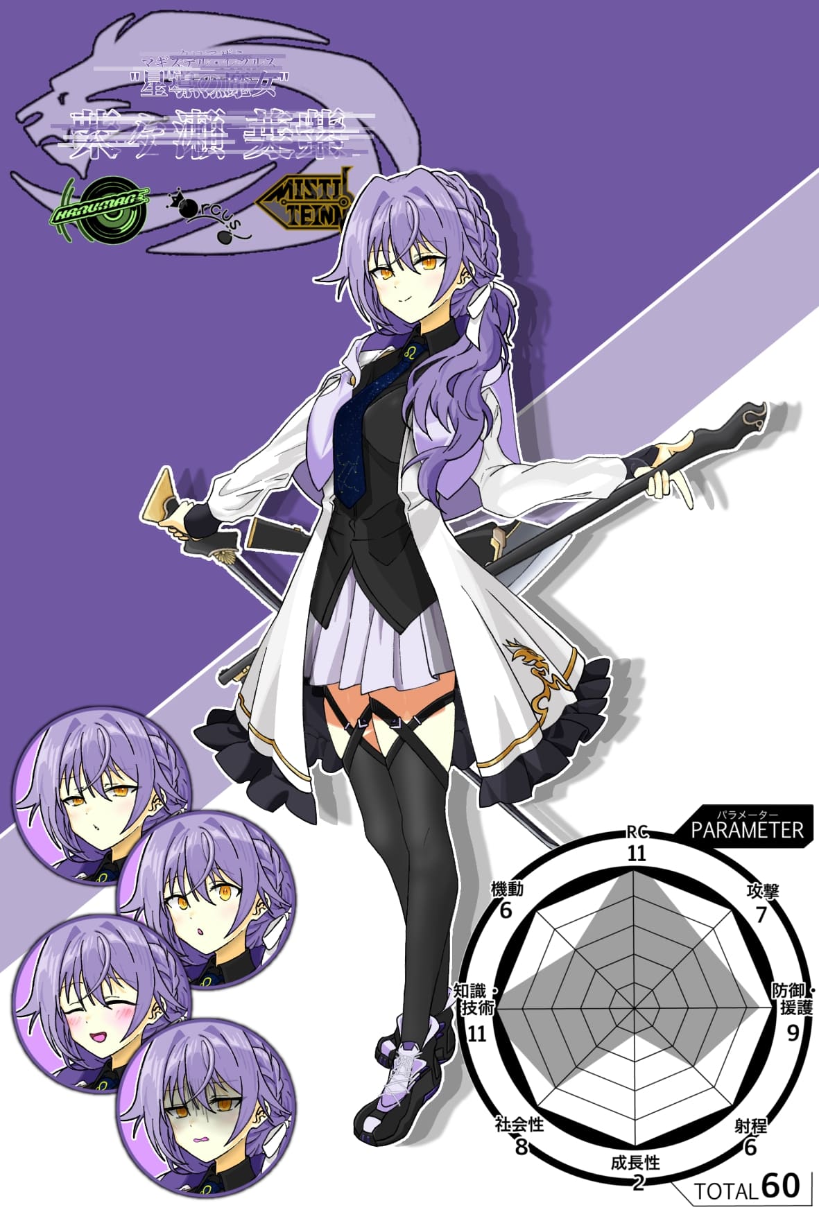 武器群は『神秘』を効率的に扱う為に自作した合体式の杖であり、正式名称は『対貪神特殊兵装SGG』との事。全部に刃が付いているのは本人の趣味。