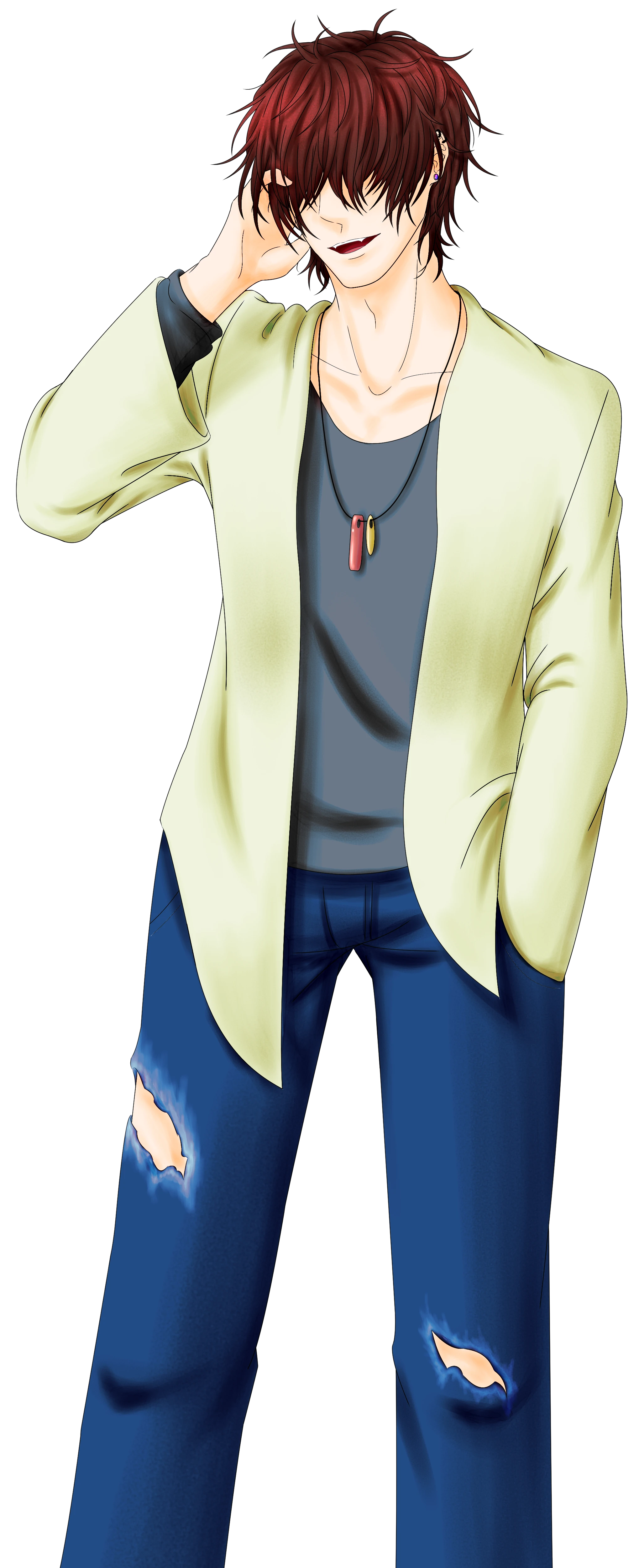 目隠れぼさぼさ、目はタレ目で死に気味。