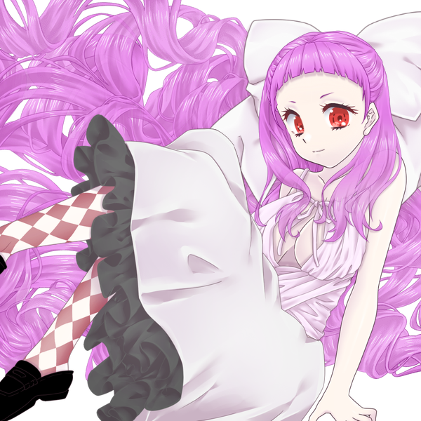 本来は青白い肌かつ真っ赤な髪なのだが、義体の仮面によってピンク髪の白目の肌ぐらいに調節している。