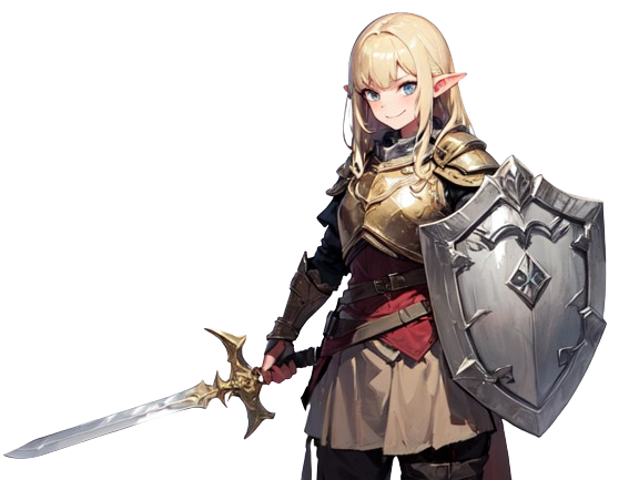 種族的にも前線に立つ才があるとは言えないが、鍛錬を重ねて騎士としての装具一式を使いこなす努力の人。