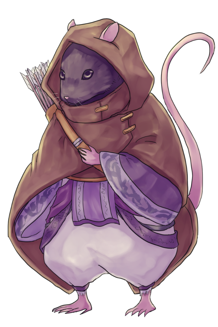 見た目はブラックフーディドのファンシーラットの毛並みをしており、二足歩行、体長は成人只人の半分程度である。