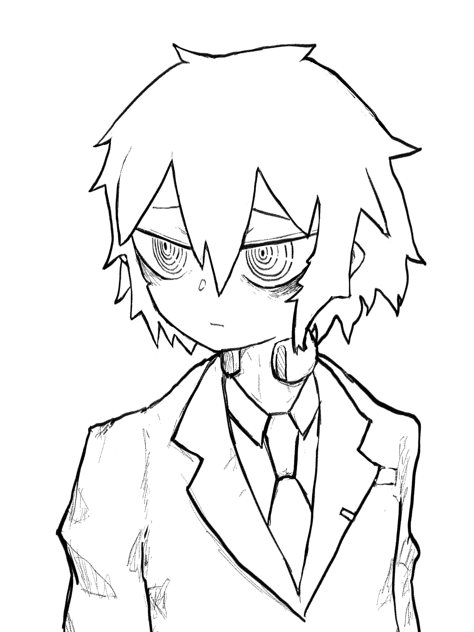 真っ白い肌に、ハウンド化のストレスの影響で真っ白になってしまった髪に対して、真っ黒い服装が目立つ、卑屈そうな青年。