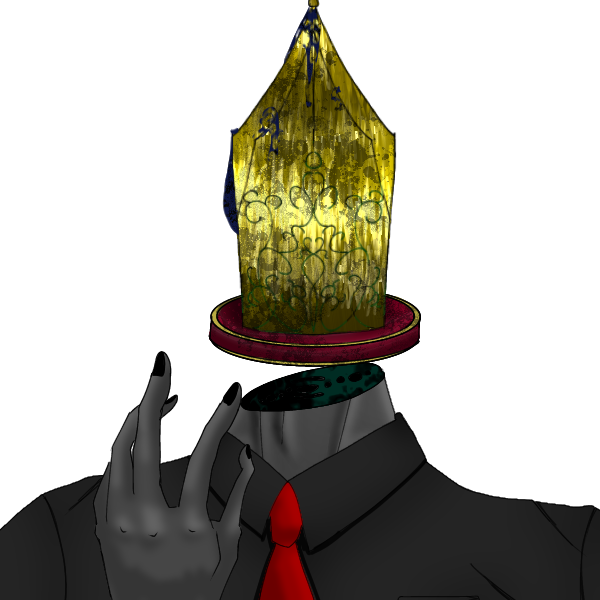 万年筆の頭を持った異形頭の男性。