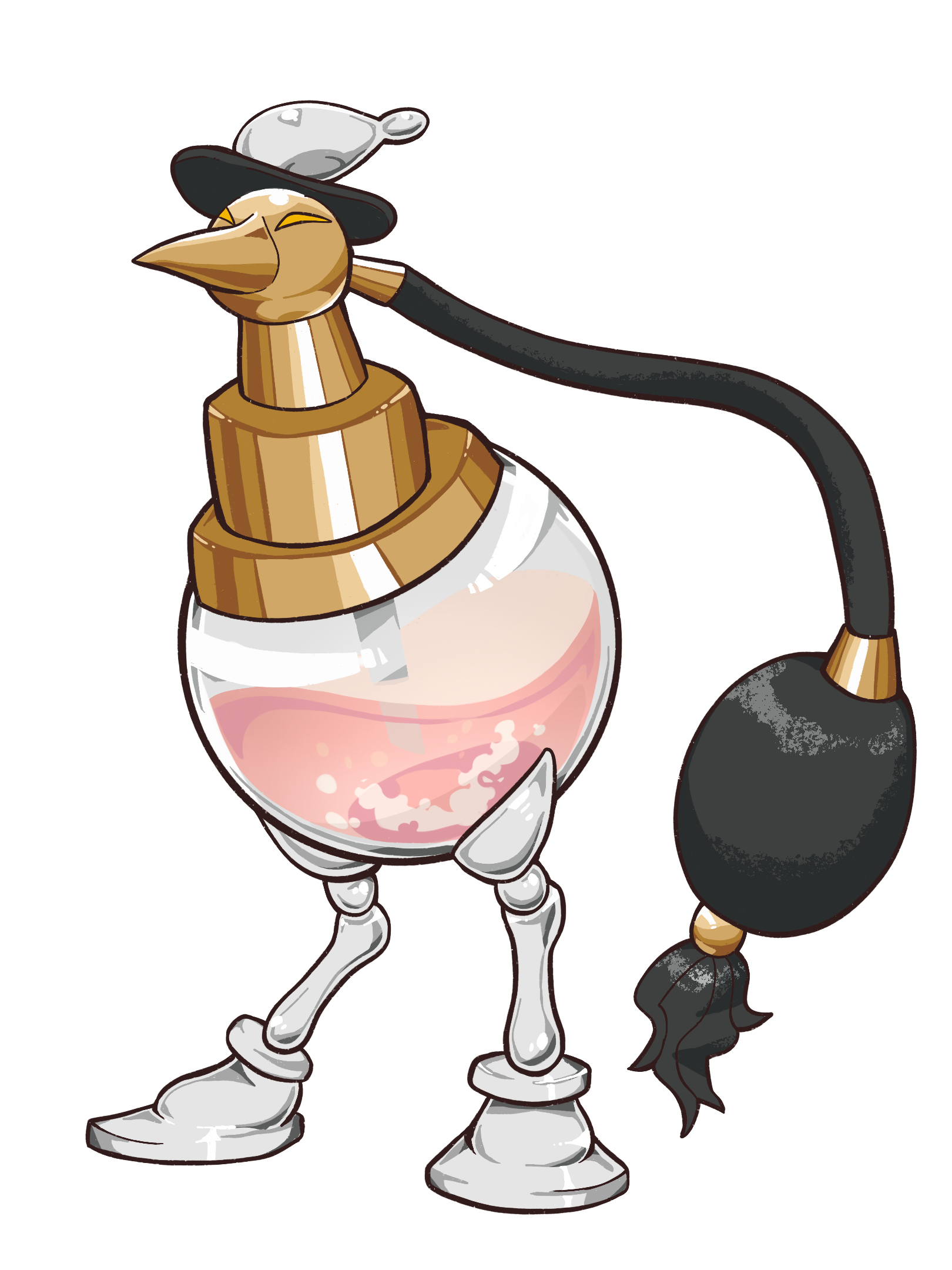 後頭部から生えているポンプを縮めることで、くちばしから香水を吹き出すことができる。