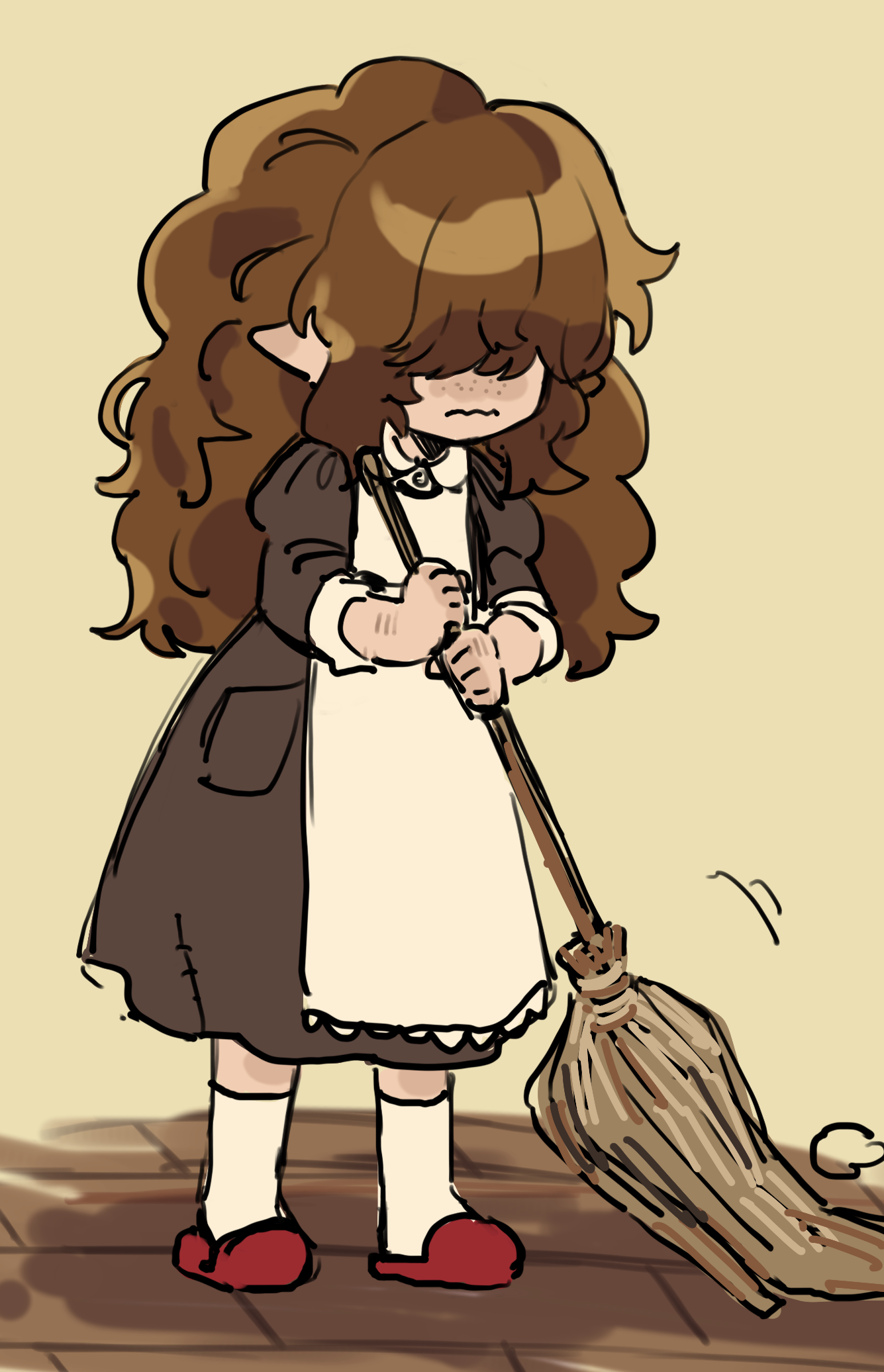 様々な家で《家事代行》を《かけもち》して働いている家の精霊「ブラウニー」の女性。