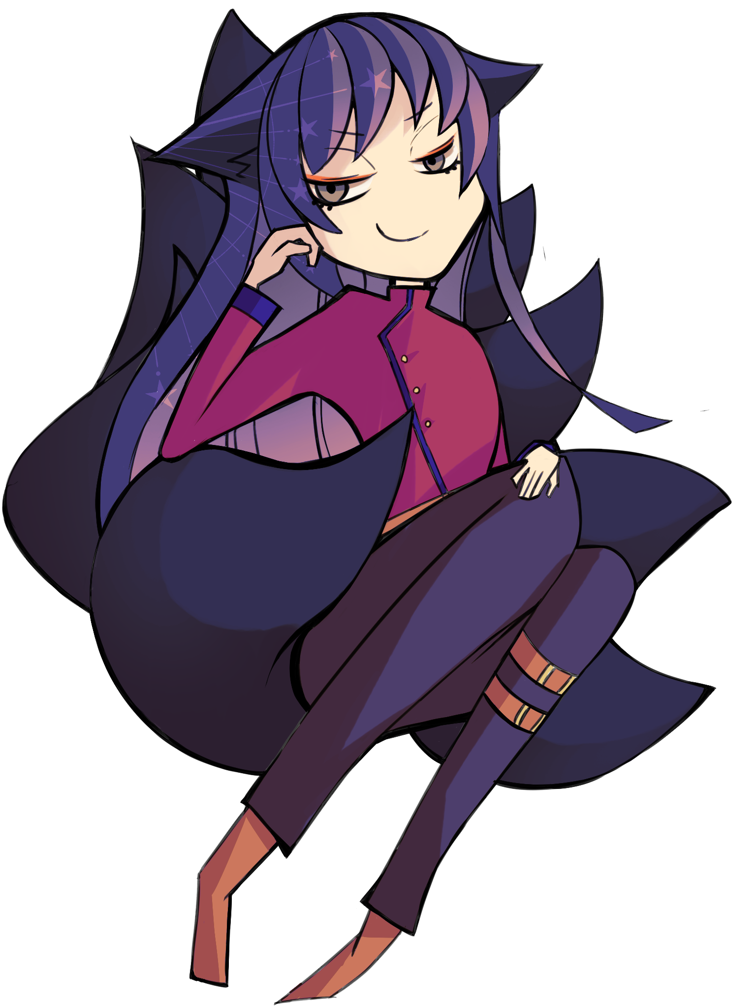 概ね人間と同じ外見だが、黒く大きな狐の尻尾を八本持つ妖狐。