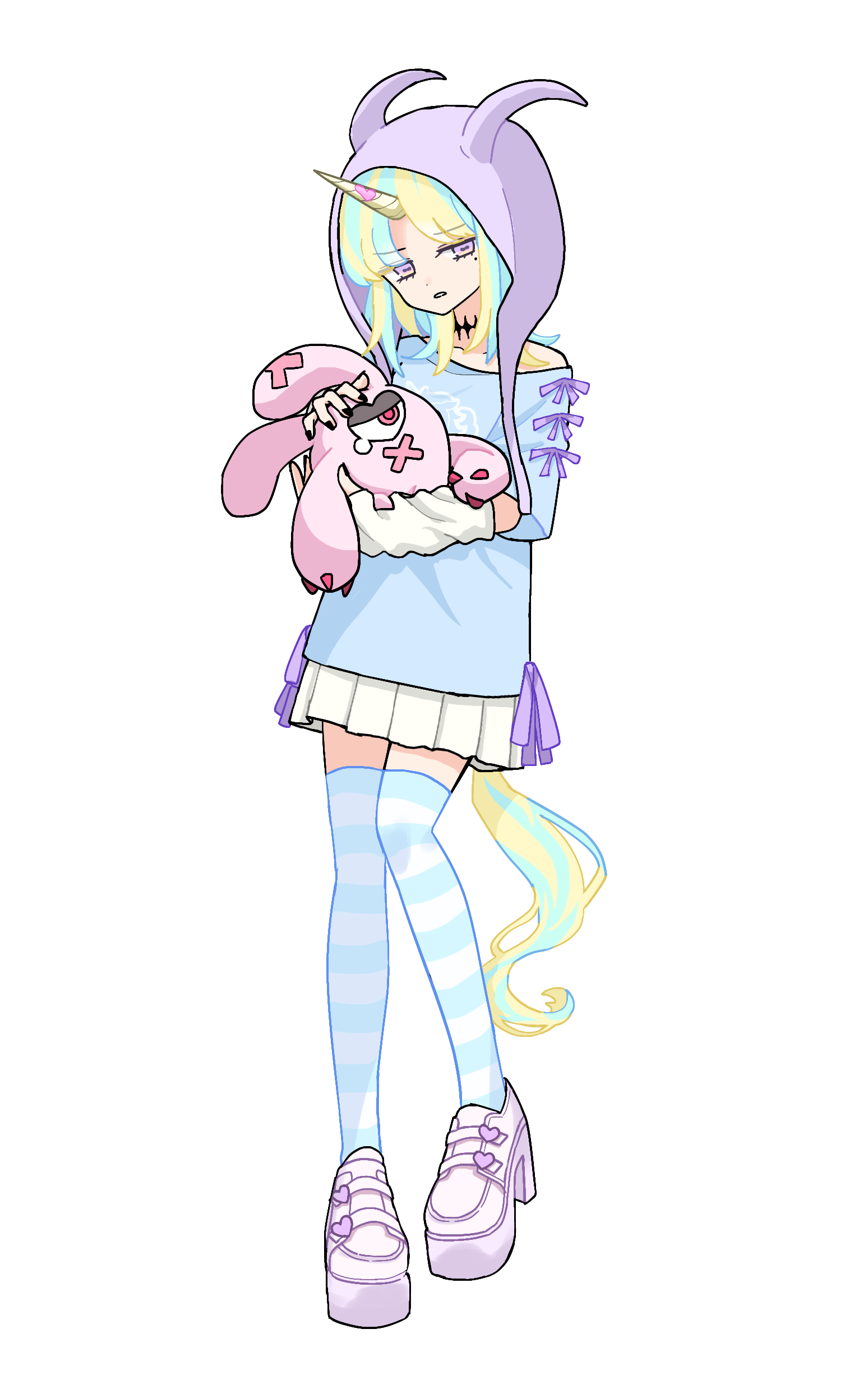 その正体はバイコーンと人間のハーフでありユニコーンではない。ユニコーンの角は付け角であり偽物。本物の角は後頭部の二本角の方である。普段からプライベートが壊滅的にだらしなく配信時間外はセ○レと遊ぶ日々を繰り返している。金使いも荒ければ人間関係も歪。前述の彼氏ができないというよりかは作る気がないという方が正しいか。とにかく快楽で満たされたいというのが本性。