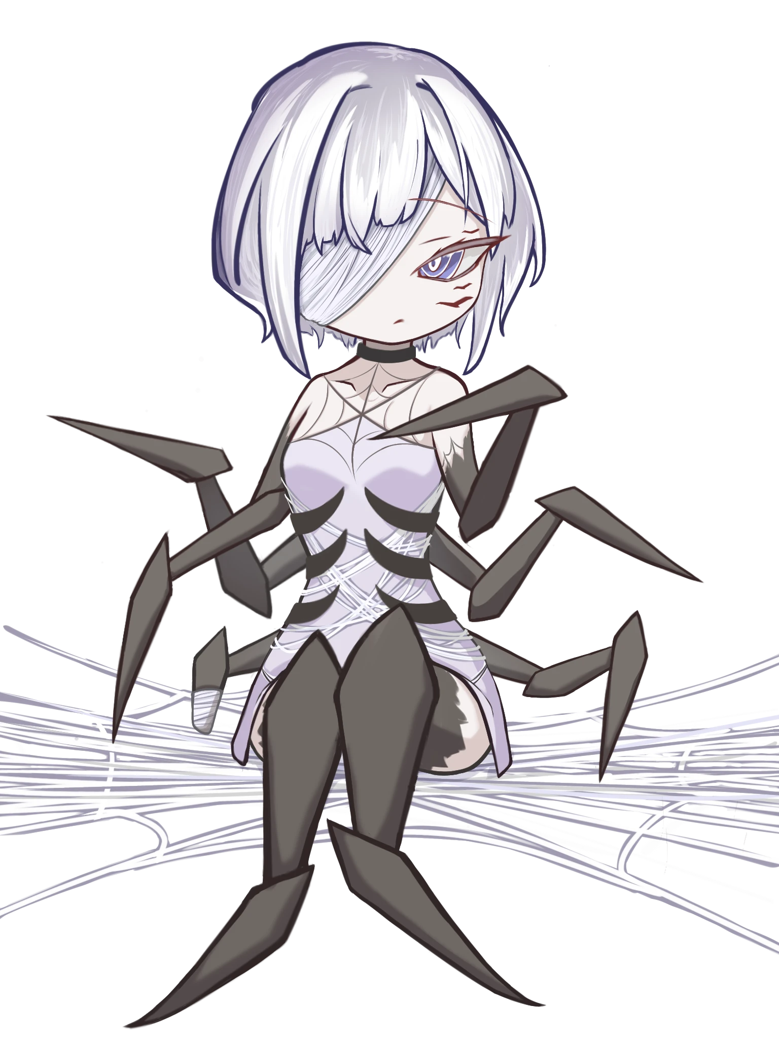 アラクネ族の末裔であり、マリョクを感知できる8本の節足と、用途に応じた数種類の糸を生成できる体内器官をもつ。