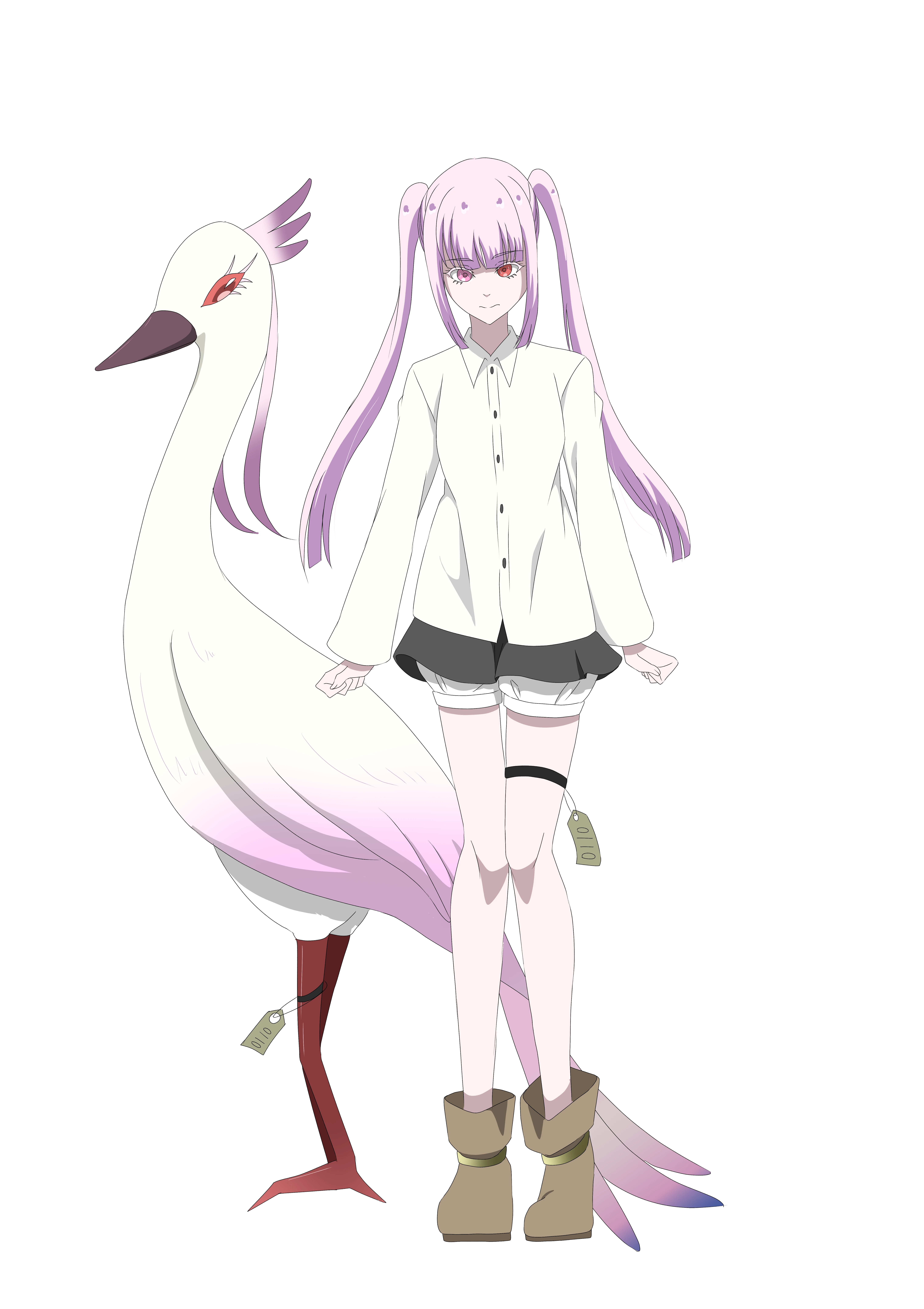 ある研究施設で人工的に生み出されたマモノ。人間と鳥の遺伝子を掛け合わせ、生き物を生み出すという冒涜的な実験により生まれた。研究施設は爆発による火災で研究員は全員死亡、研究資料も全てなくなった。彼女だけが生き残った。何故生み出されたのか、何のために生きているのか、その全てが謎で、彼女は生きる意味を探している。