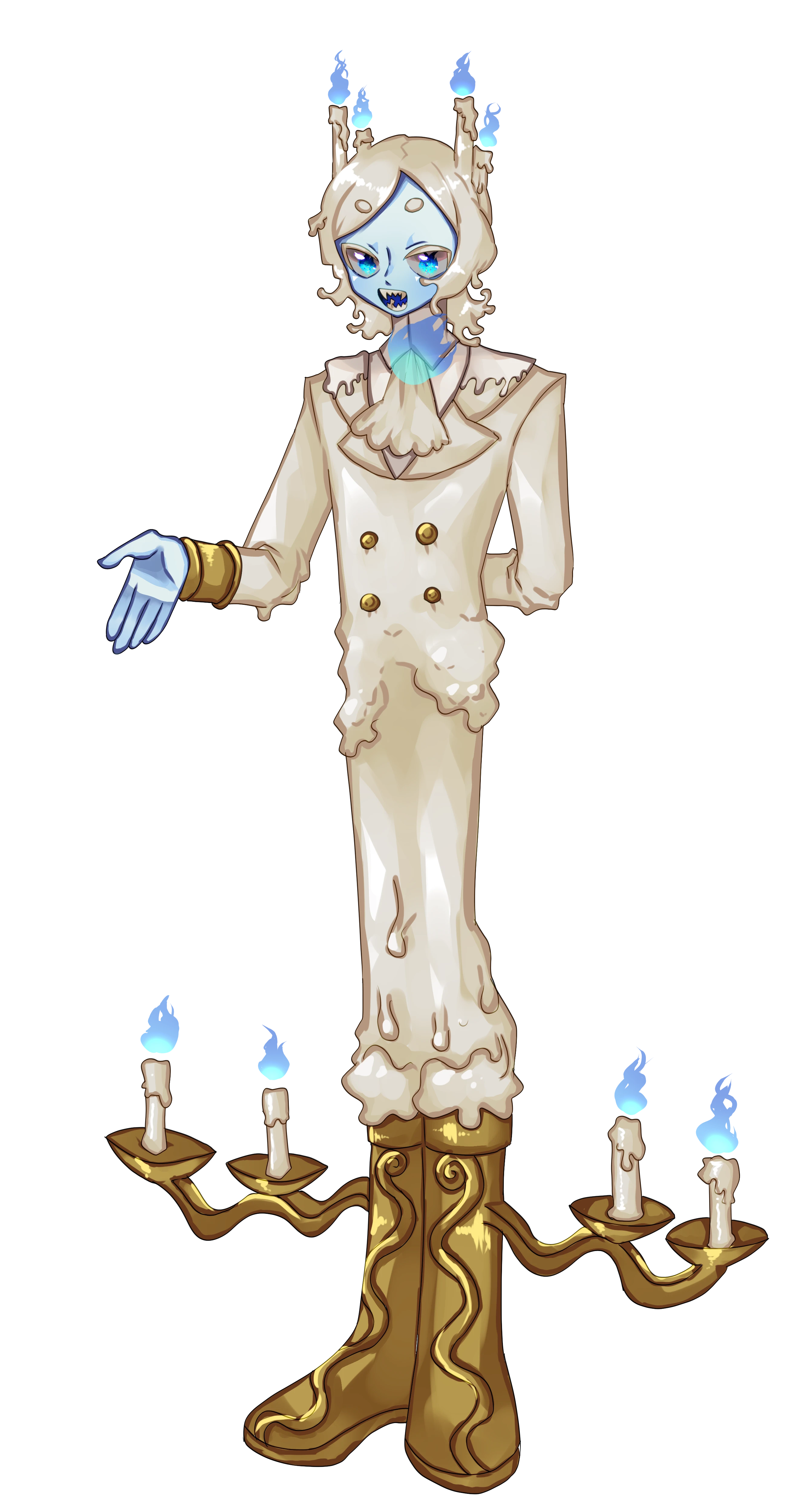 フランスのとある城で食卓を照らしていたロウソクに意志が宿った蝋人形。体は蝋でできてるゆえに簡単に折れるし、燃える。普段はロウソクのオバケのような簡単な形態をとっているが、かしこまった場や本気の戦いの場では人間に似た見た目を取る。現在はマモノとして東京でホテルマンをして東京の人々をもてなしており、いつか自分のホテルを持ってオーナーとなり人々を迎えるのが夢。フランスの城にいた頃から人をもてなす事が好き。だが実際のところは人の生命力を吸って生きている(燃えている)。