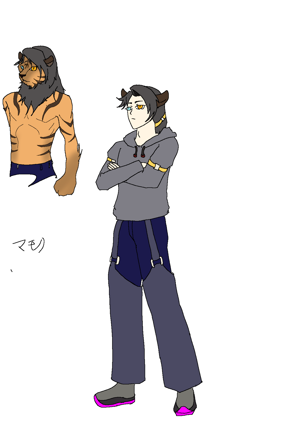 獣人の青年。獣人でもライオンの父とトラの母から生まれたライガーである。雑種特有の疾患でオッドアイだが右目がやや弱視であり、半陰陽でもある。