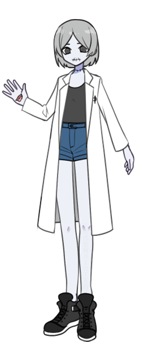 死体のような青白い肌、縫合跡と手のひらにある口が特徴的であり、