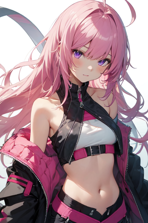 薄ピンクの髪に紫の目。