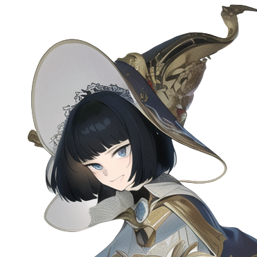 黒髪のショートボブで瞳の色も暗め。頭にかぶった叡智のとんがり帽子がトレードマーク。