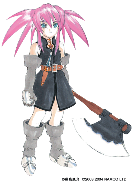 髪はピンク色のとげとげしたツインテール