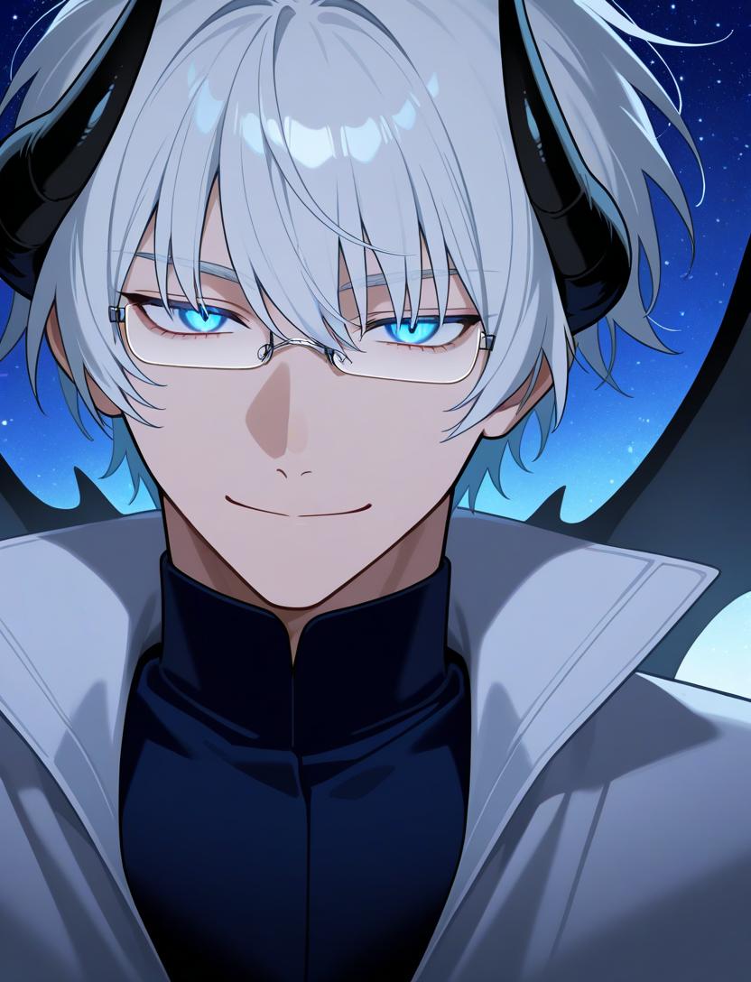 白髪碧眼の眼鏡をかけたドレイクの男性。