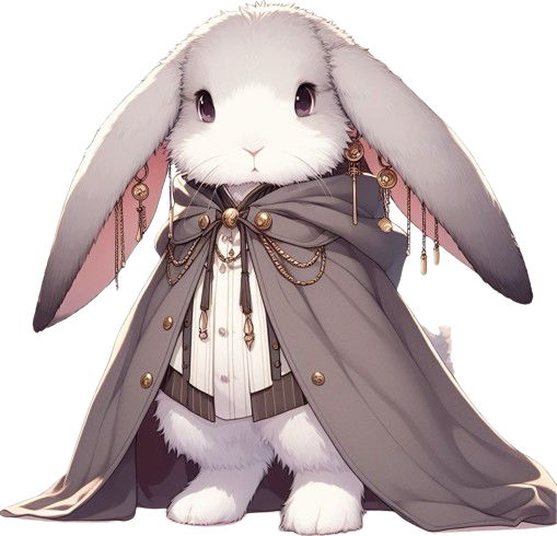 灰色がかった白い毛並みのタビット。垂れ耳。
