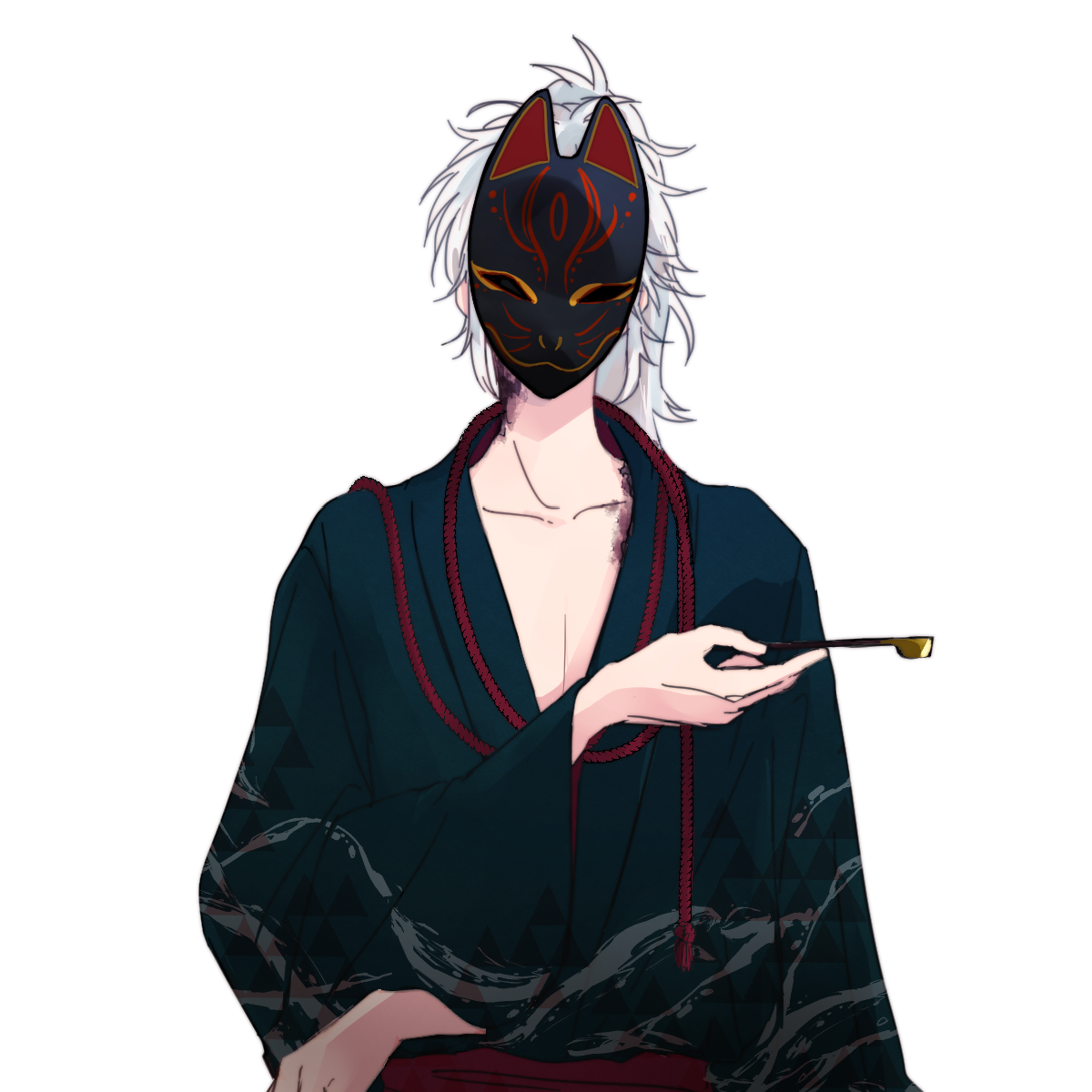 狐のお面を着けたアビスボーンの青年。