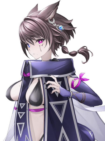 また、ナイネルガを崇めるだけあって出身の村はその流派を伝える場にもなっており彼女自身もその技術を受け継いでおり戦闘時は銛を投げつけて戦う。