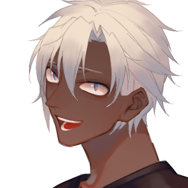 白銀の髪に褐色の肌を持つ長身の男。服装はラフで、寝間着との差があまりない。首筋に沿った宝玉がある。