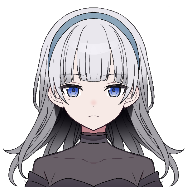 肩口まで伸びた銀髪と青い瞳が特徴的。