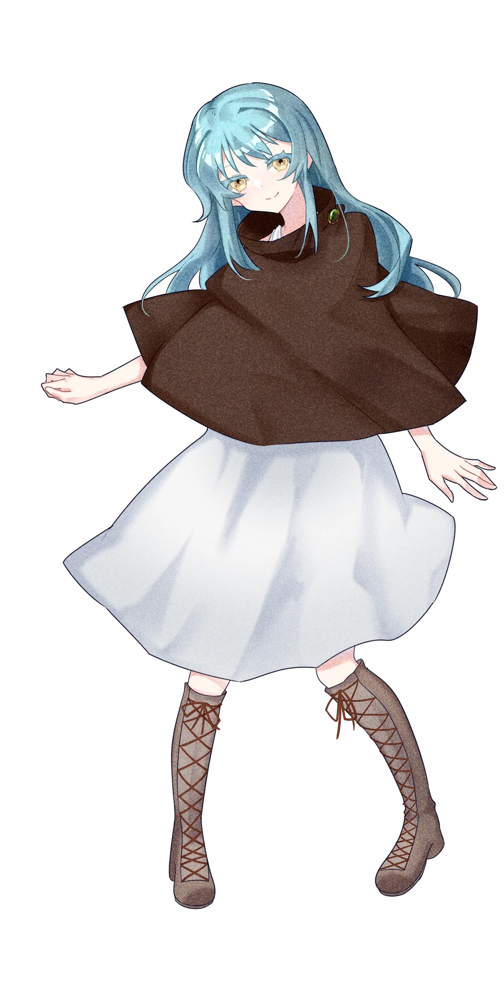 水色髪金眼の女性。