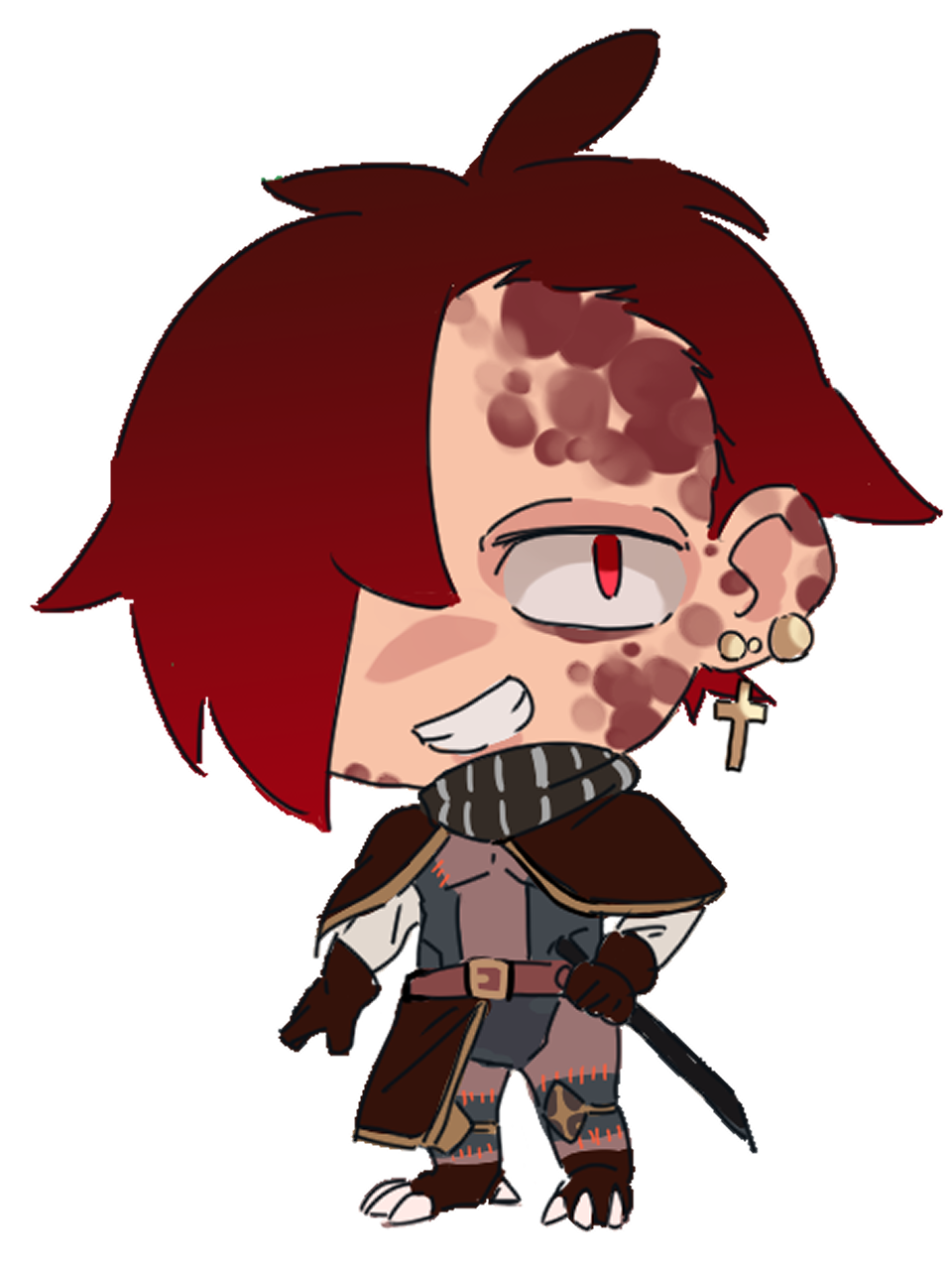 幼少期は青白い肌、中途半端に遺伝した赤黒い鱗の奇妙さを疎まれ、スラムで過ごす。