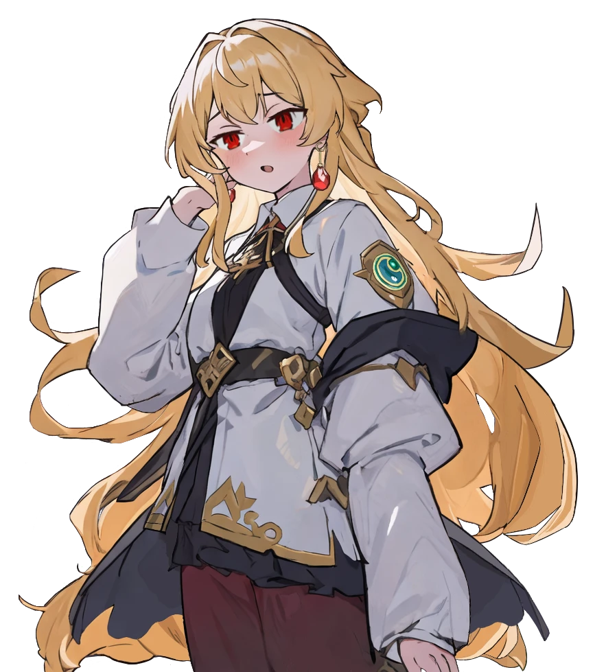 豊かな金髪を吹き流し、着崩した神官服の上にさらに豪奢なアクセサリーで着飾った少女。