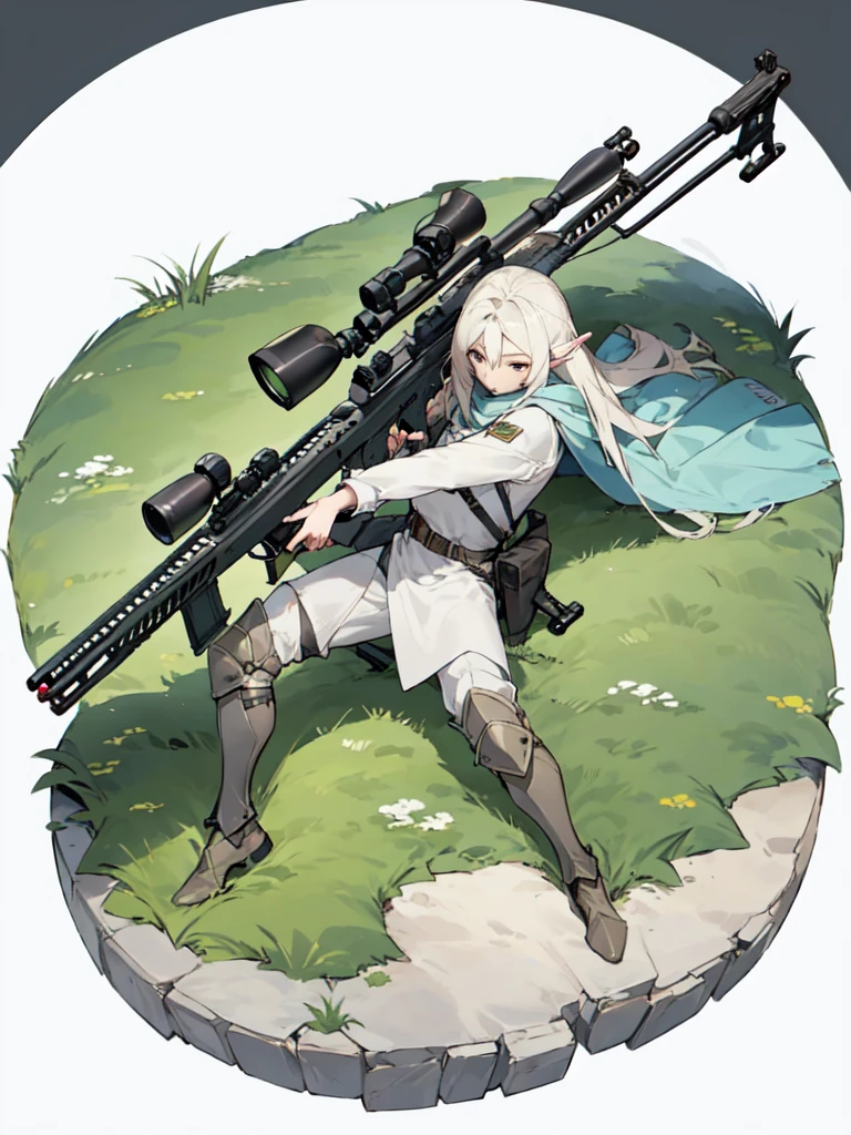 ・身長は170cmほどで、長い白髪に大きな狙撃銃を背負っている。