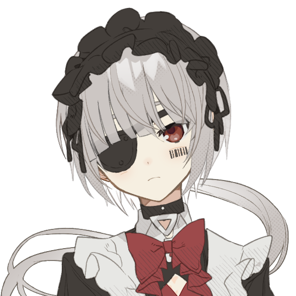 白髪に赤い目、右目に付けた眼帯が特徴である。