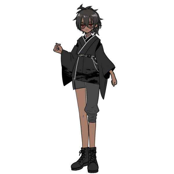 黒髪・仏頂面・色黒