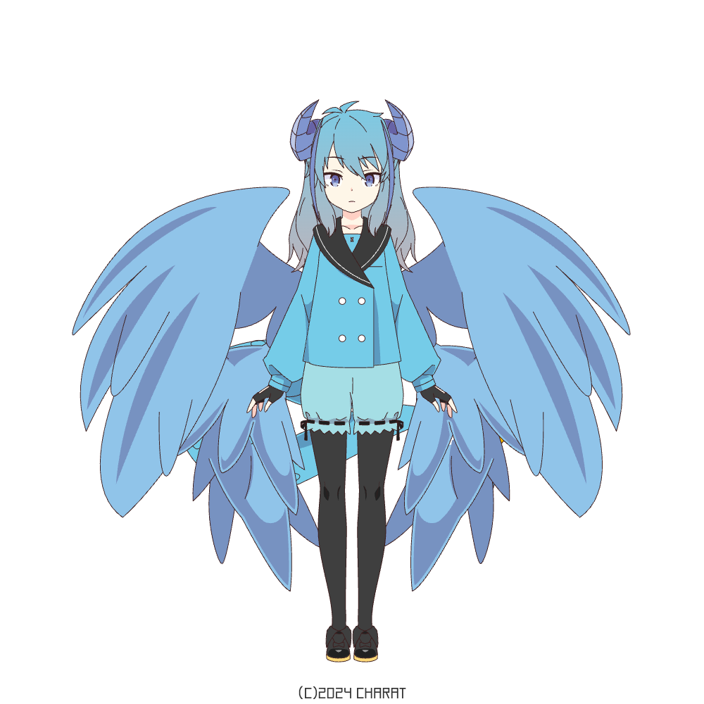 青髪で長身の女性でスタイルはいい方。