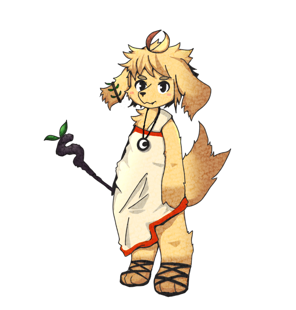 冒険者によってハーヴェスへと連れてこられてからは、月神シーンの神殿に預けられる。シーン神官として住み込みで働くこととなる。神聖魔法の修行中に魔法に対して強い関心を示したため、特殊な言語を介さずとも使える森羅魔法も教えてもらう。人族と一緒に過ごしたことがなかったので、常識外れな行動をしてしまうこともしばしば。生来好奇心旺盛で素直な性格。人を疑うことを知らないのでうまい儲け話にはすぐ乗ってしまう(チョロい)。
