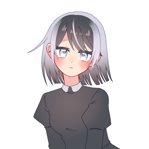 白と黒が入り混じった変わった髪色をしている。幼少期は長くしていた髪は冒険者になる際に、短めに切り揃えた。