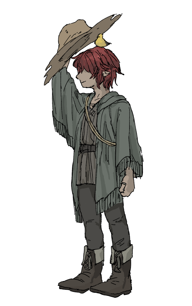 | 頭 | 帽子 | 革製の大きな帽子。中に小鳥が収まる。 |