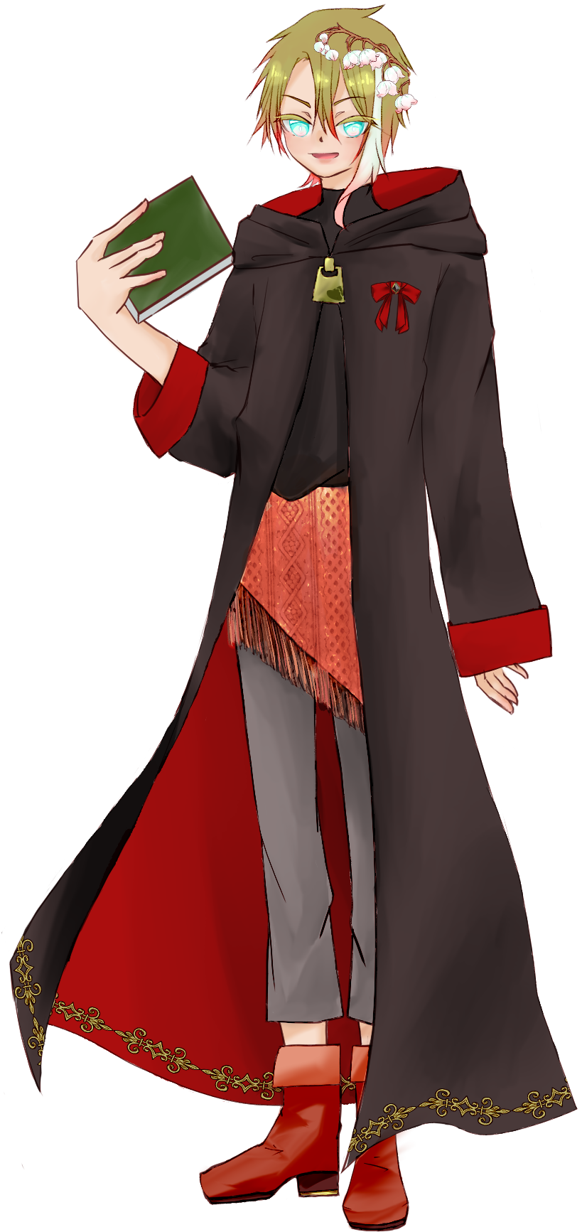 ・黄緑の髪に白のメッシュがある。