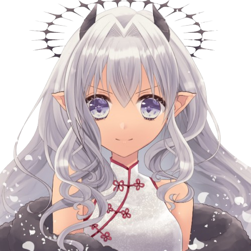 - 2本の黒い大きな角と複数の小さな角が頭から生えている。美人。