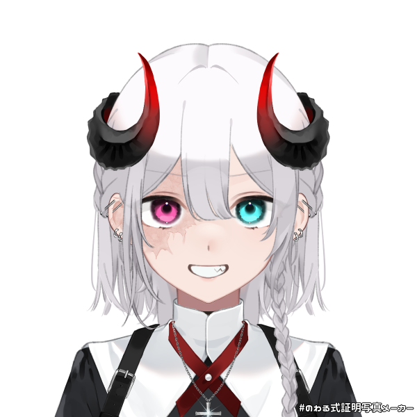 白髪の碧眼、右目は赤く変色している。