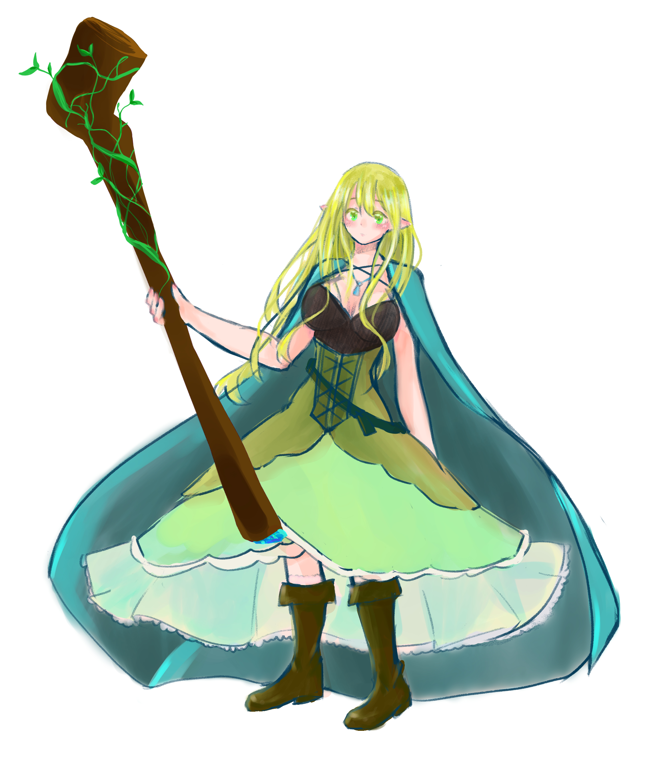 金髪に黄緑の瞳をもつエルフの女性。