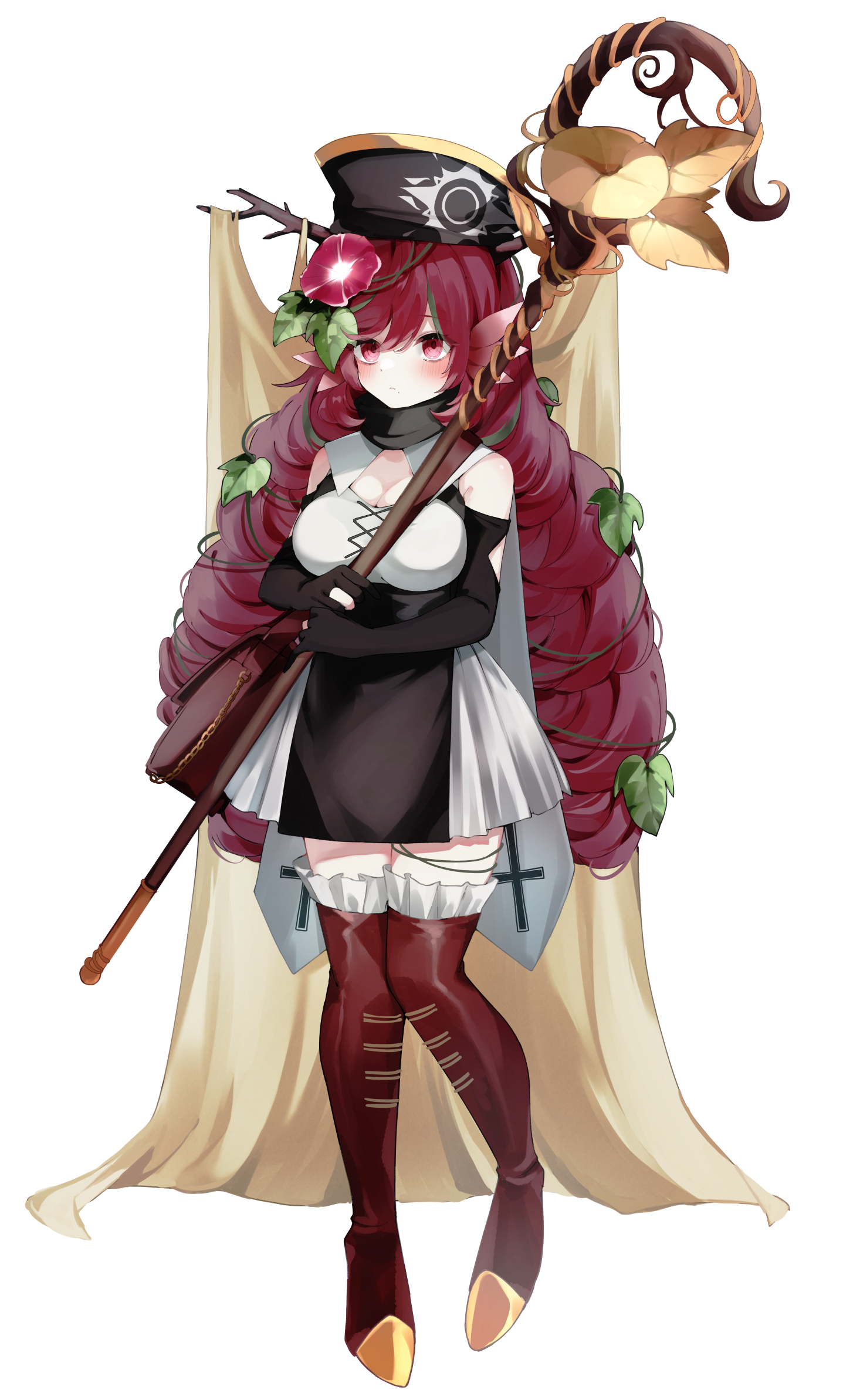 赤い朝顔を花を頭につけている。