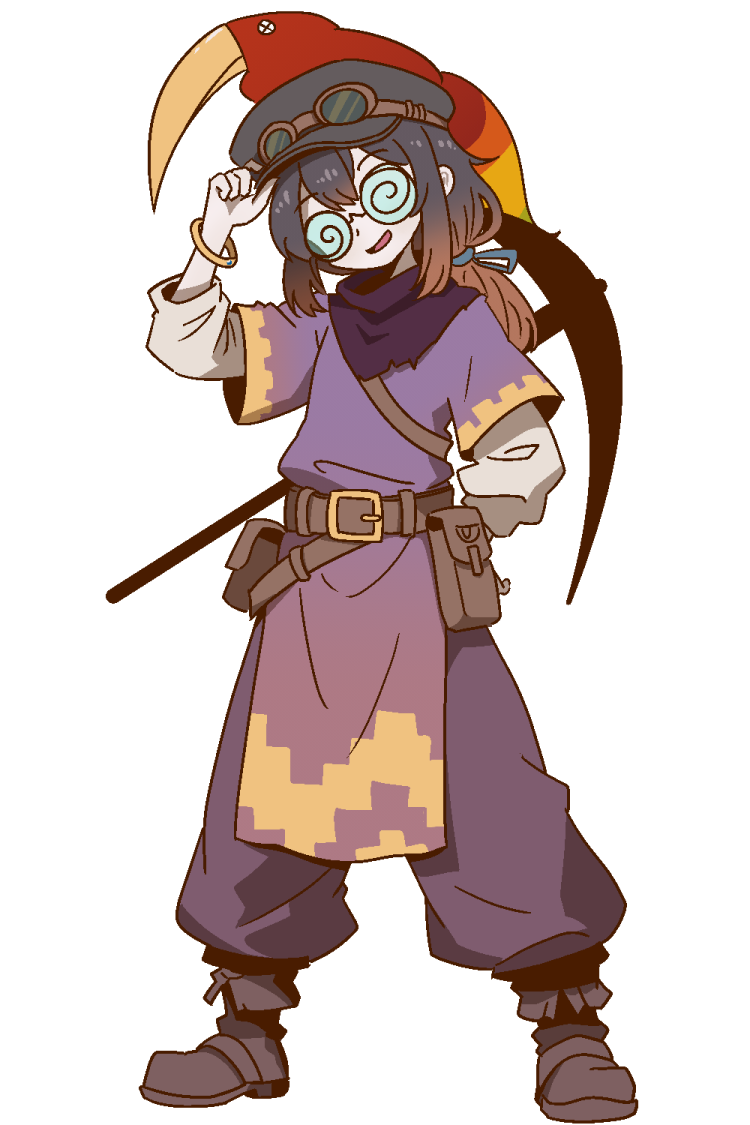 細身な身体とのサイズが合っていないぶ厚いレンズのメガネと、やたらと鍛えあげられた背負いのツルハシが目立つ、長髪の青年。
