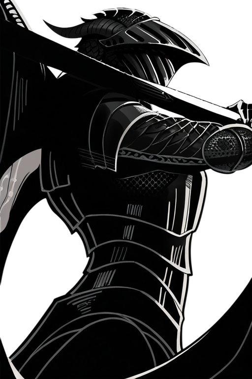 墨のように黒い鎧を着こみ、その巨躯より大きな剣を担ぐ剣士。かつては数人で鮮血海峡で人蛮問わず殺してはその武器や防具を修理して売買することを生業としていたが、鮮血海峡の武力による平定が行われた際に家族同然だった仲間たちを失い、それ以来冒険者としてかつての仲間の安否を確認する為に旅を続ける。