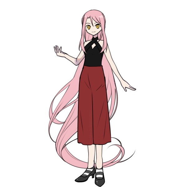 髪ピンク、目黄色