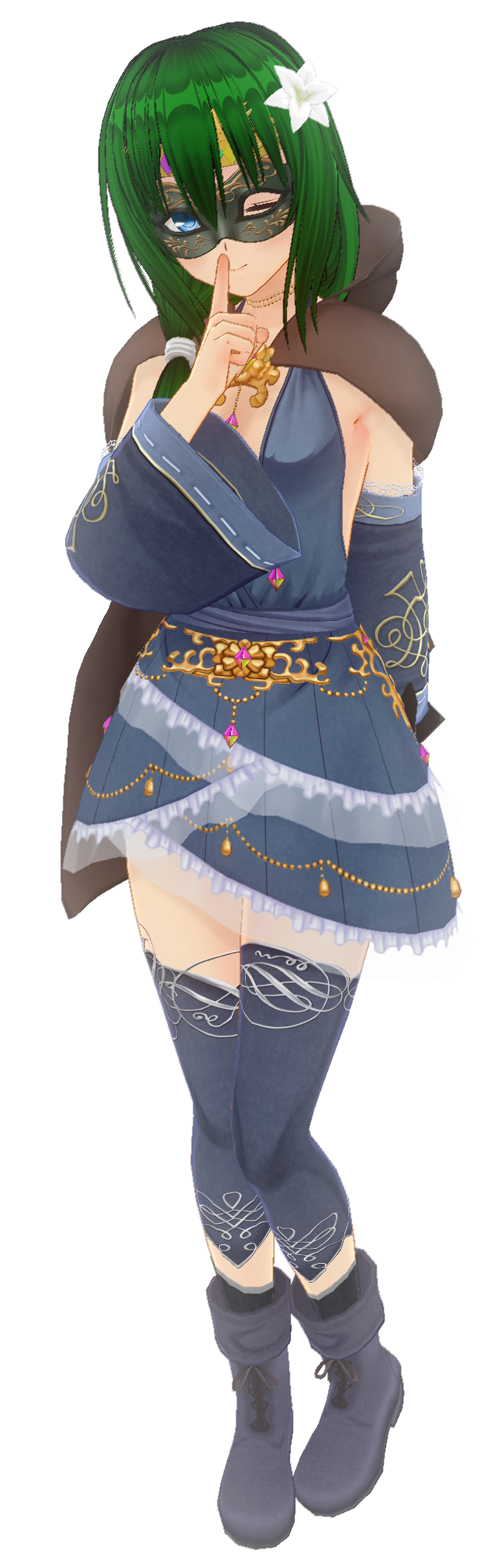ウルシラ遠征中は仮面をつけており、本来は中性的な口調だが人目のあるときは丁寧で儚げな喋り方をする。