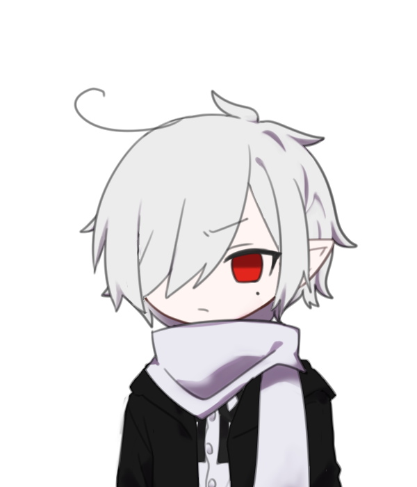 髪は真っ白で目は赤色、牙があることは嫌いなのでいつもマフラーを巻いています